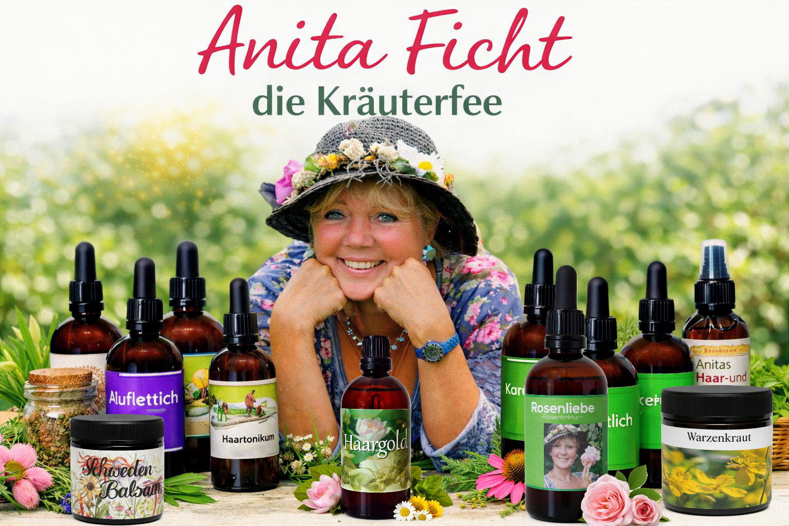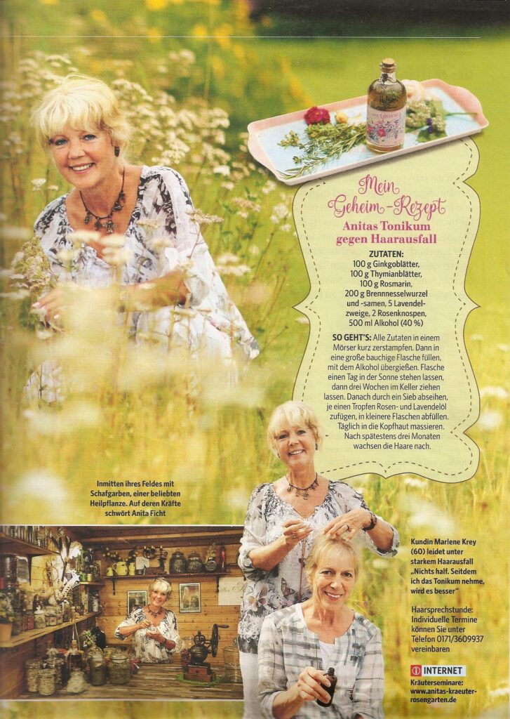Schon früh entdeckte Anita ihre Leidenschaft für Pflanzen, deren Wirkweisen und ihren Einfluss auf das Wohlbefinden. Aus dieser Leidenschaft entstand ein Lebenswerk: ein Kräutergarten, der nicht nur Arbeitsplatz, sondern Ort der Ruhe, Forschung und Inspiration war. Hier entwickelte sie mit großer Sorgfalt Tinkturen, Salben, Kräutermischungen und naturbasierte Pflegeprodukte, die für ihre Qualität, Reinheit und Wirksamkeit geschätzt wurden. Ihre Rezepturen beruhen auf überlieferten Verfahren, die sie im Laufe der Zeit weiterentwickelte, präzisierte und mit ihrer eigenen Handschrift verfeinerte.