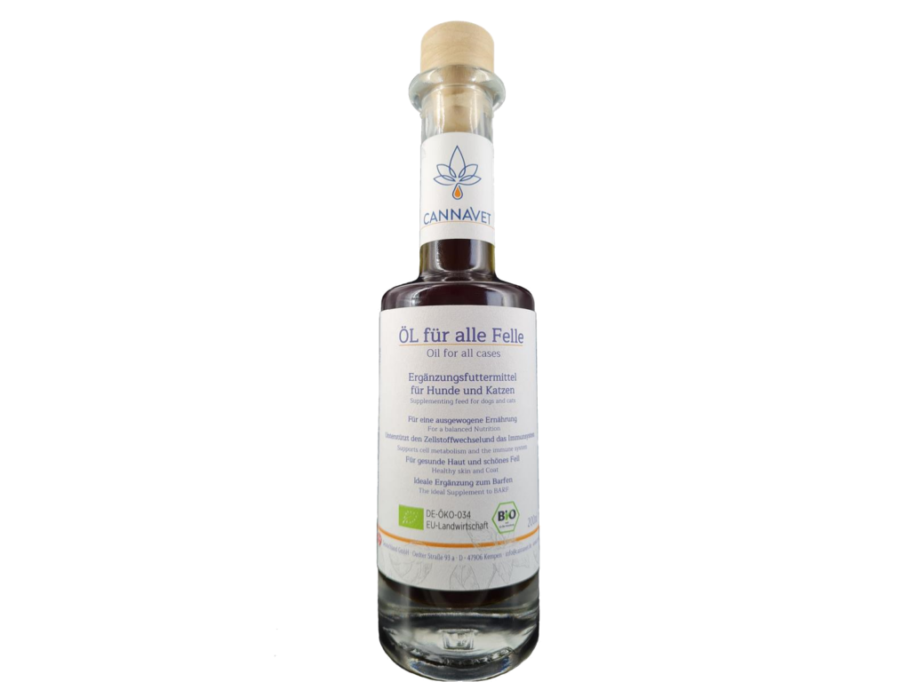 Täglich mit dem Futter verabreichen. Das “Öl für alle Felle” kann Trocken- und